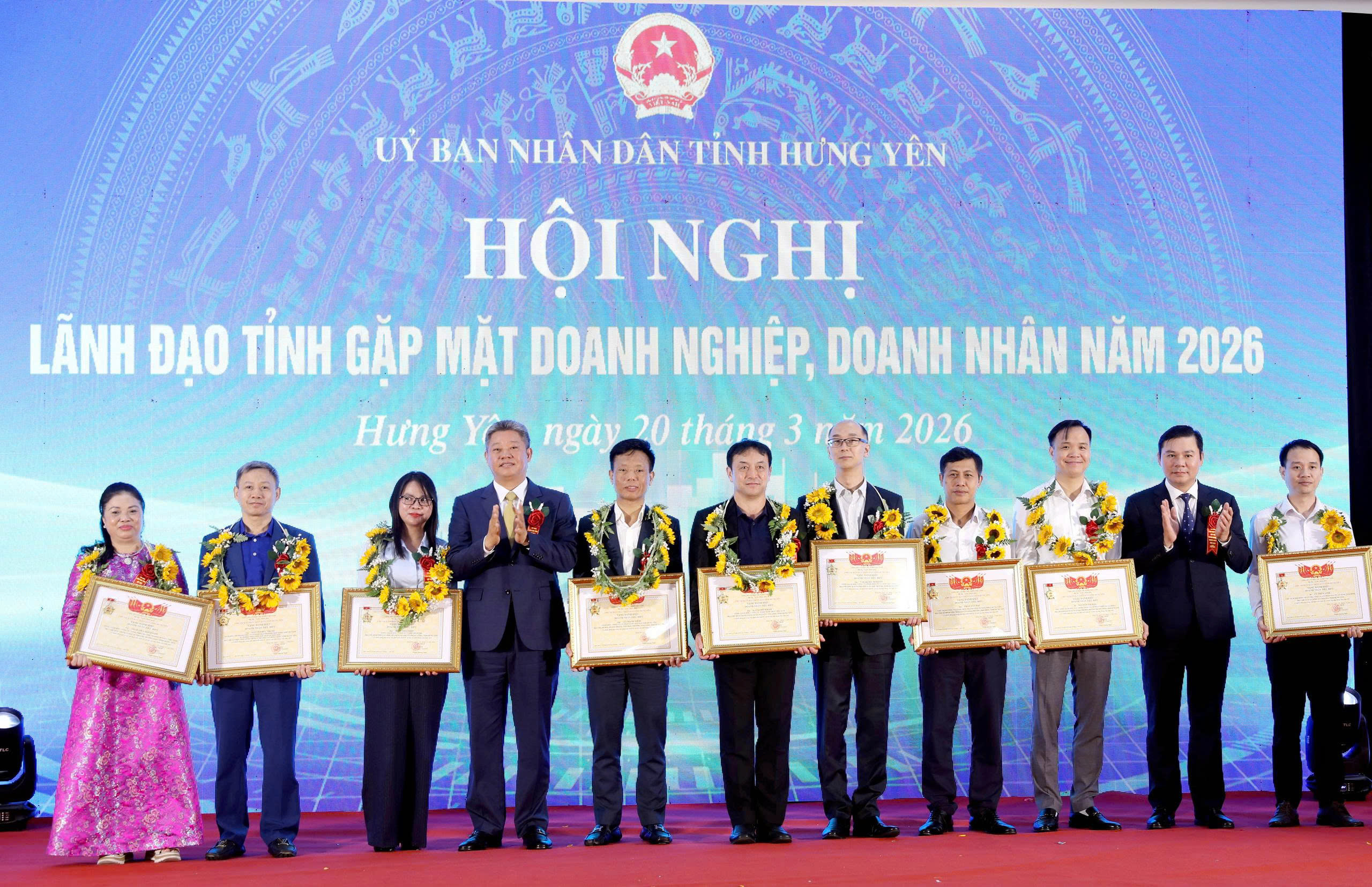 Sáng ngày 20/03/2026 tại Khách sạn Dầu khí (số 458 đường Lý Bôn, phường Trần Hưng Đạo, tỉnh Hưng Yên). Ủy ban nhân dân tỉnh Hưng Yên tổ chức Hội nghị Lãnh đạo tỉnh gặp mặt Doanh nghiệp, Doanh nhân năm 2026. Tại Hội nghị, UBND tỉnh Hưng Yên đã tổ chức trao tặng Kỷ niệm chương và Bằng khen của Chủ tịch UBND tỉnh Hưng Yên cho các Doanh nghiệp và Doanh nhân có thành tích xuất sắc.